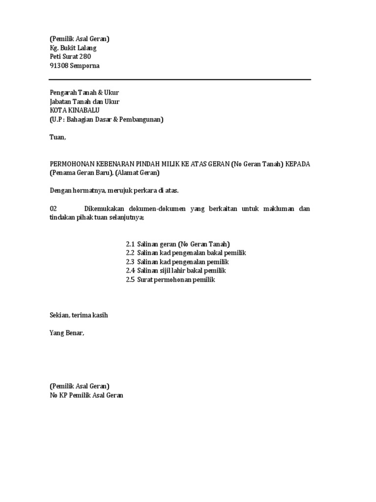 Surat perjanjian tukar guling tanah. Cara Menulis Surat Untuk Menukar Alamat Rumah Telekom Malaysia Internet - Contoh Surat Wakil Kuasa Lhdn - Contoh Surat - Untuk menetapkan semula dan menukar kata laluan perbankan internet anda. Atau mungkin juga pindahmilik tukar nama tanah daripada ibu bapa keluarga kepada kita.