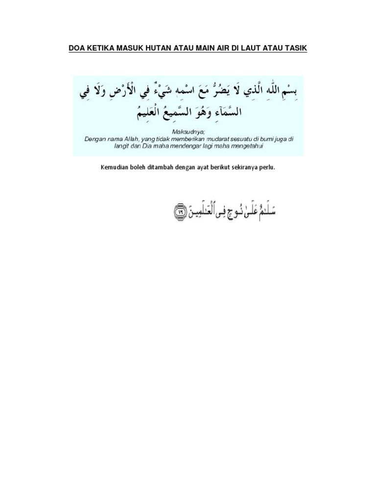 Doa Ketika Masuk Hutan Atau Main Air Di Laut Atau Tasik Pdf
