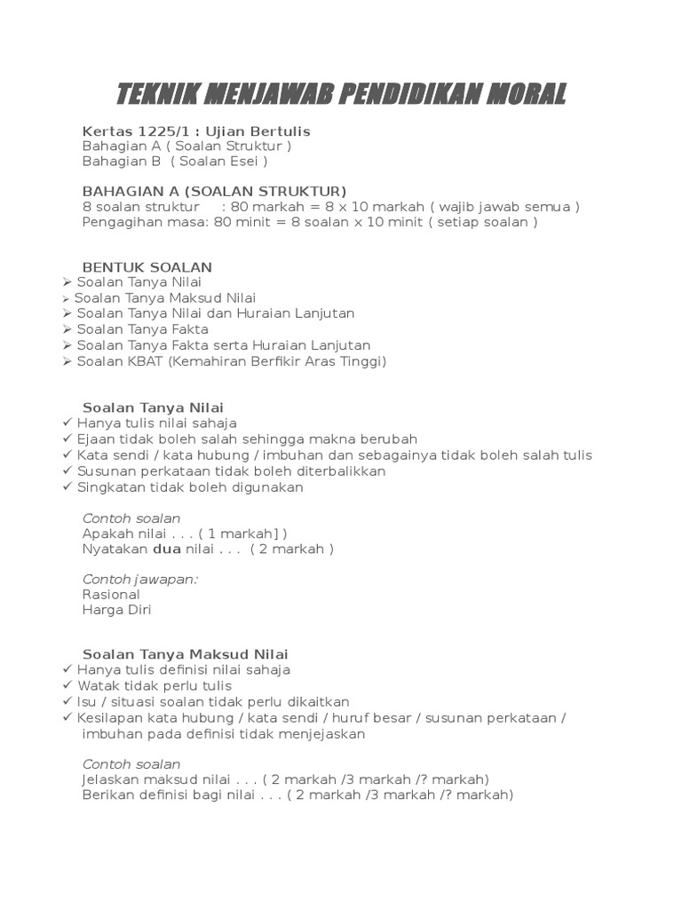 Teknik Menjawab Pendidikan Moral Spm Kod 1225 Pdf
